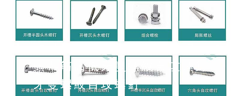 六角法蘭螺栓 Carriage bolt 馬車(chē)螺栓 Square head bolt方頭螺栓 Flat countersink square neck bolts 沉頭方頸螺栓 Flat counter sunk nib bolts 沉頭帶榫螺栓 Cross recessed pan head tapping screws 十字槽盤(pán)頭自攻螺釘
